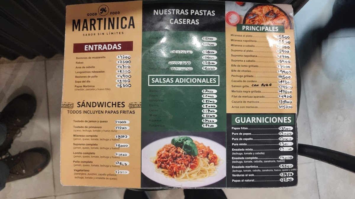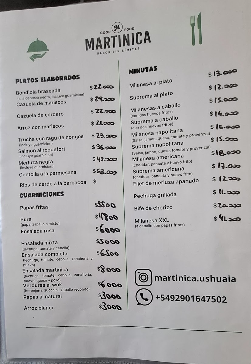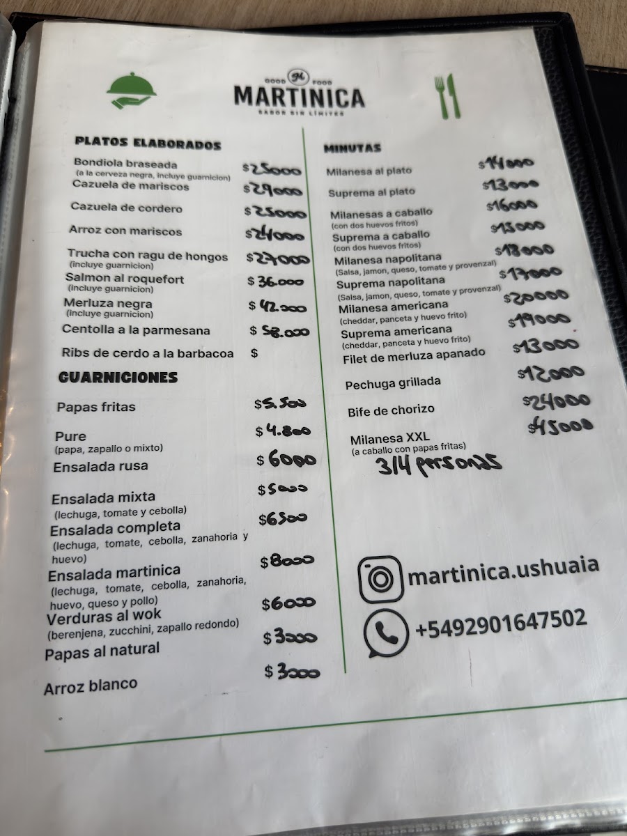 Welcome to Martinica, a beloved gem located at Av. San Martin 68 in Ushuaia, Argentina. Renowned for its authentic flavors and welcoming atmosphere, this restaurant offers a diverse menu that caters to all palates. From hearty sándwiches like the Suprema Completo to indulgent hamburguesas such as the Especial Medallon, each dish combines freshness and quality at an accessible price. Diners rave about the homemade chicken wings and the daily specials, which deliver a true taste of Argentina.